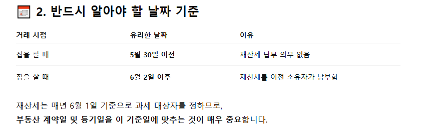 - 📍 살 사람은 6월 초 이후에 매수해야 재산세를 피할 수 있다.